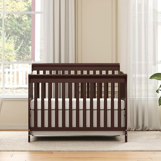 Baby Crib 5-in-1 Convertible, Wooden Cribs Converts to Toddler Bed, Daybed and Full-Size Bed, Nursery Furniture with Non-Toxic Finishes (Espresso)