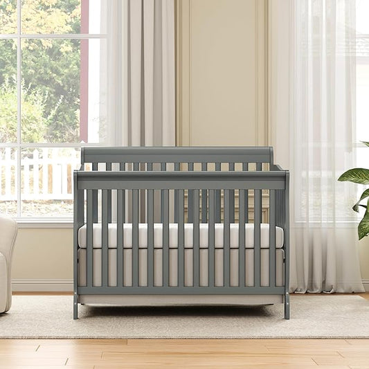 Baby Crib 5-in-1 Convertible, Wooden Cribs Converts to Toddler Bed, Daybed and Full-Size Bed, Nursery Furniture with Non-Toxic Finishes (Steel Grey)