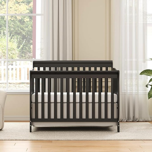 Baby Crib 5-in-1 Convertible, Wooden Cribs Converts to Toddler Bed, Daybed and Full-Size Bed, Nursery Furniture with Non-Toxic Finishes (Black)
