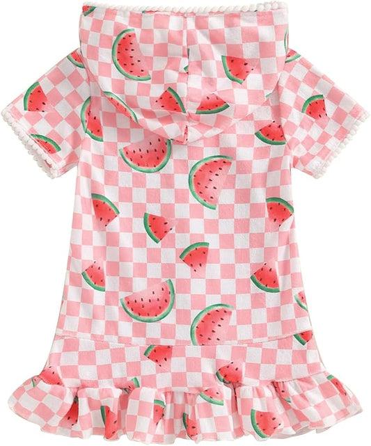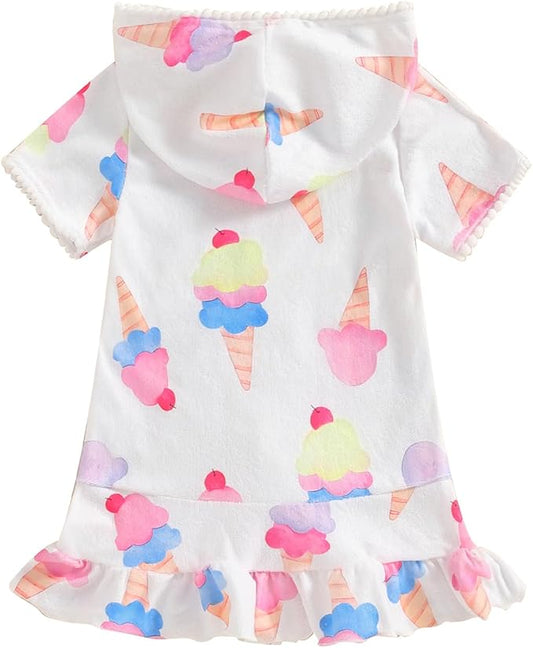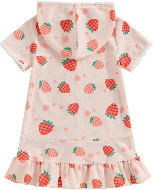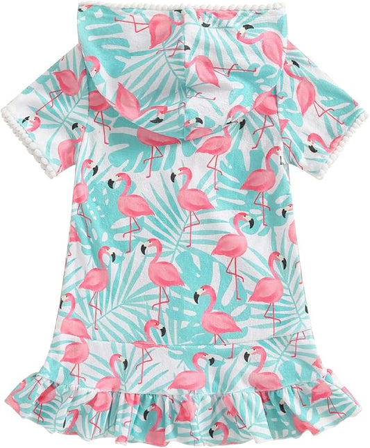 Girls Hooded Zip Terry Coverups Swimsuit Kids Baby Girl Floral Print Short Sleeve Swim Cover-Up Swimwear