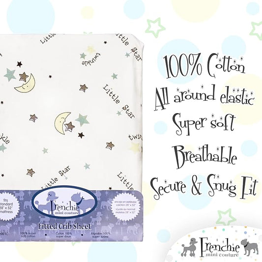 Fitted Crib Sheet 100% Woven Cotton Fits Toddler Mattress, 28 x 52 x8in, Twinkle Little Star