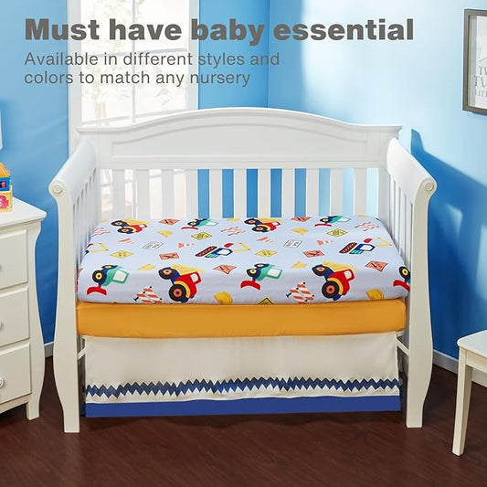 Everyday Kids 2 Pack Fitted Boys Crib Sheet, 100% Soft Breathable Microfiber Baby Sheet, Fits Standard Size Crib Mattress 28in x 52in, Nursery Sheet - Construction/Gold