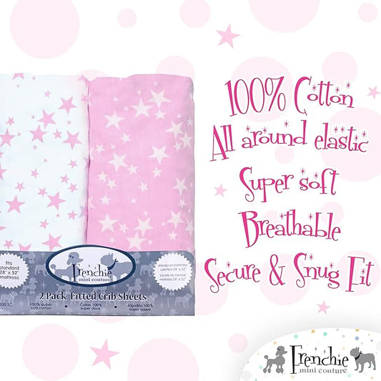 Fitted Crib Sheets 100% Woven Cotton Fits Toddler Mattress, Pink Stars, 28 x 52inx8in, 2-Pack