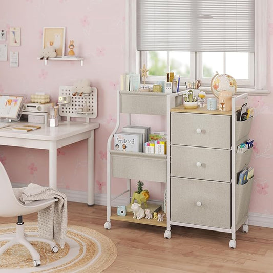 Baby Diaper Caddy, 3 Tier Baby Organizer and Storage Cart with Dividers and Drawers, Mobile Utility Rolling Cart, Newborn Baby Essentials Storage Cart with Wheels for Nursery, Bedroom, Beige