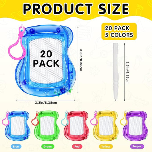 20Pcs Mini Magnetic Drawing Board for Kids,Backpack Keychain Clip Magnetic Doodle Board,Erasable Mini Sketch Writing Pad,Mini Drawing Board for Boys Girls Birthday Party Favor Classroom Supply,5Colors
