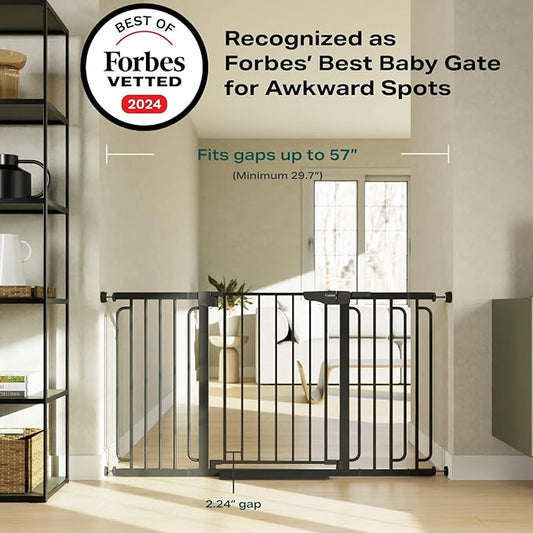 Cumbor 29.7-57" Extra Wide Baby Gate for Stairs, Mom's Choice Awards Winner-Dog Gate for Doorways, Pressure Mounted Walk Through Safety Child Gate for Kids Toddler, Tall Pet Puppy Fence Gate, Black