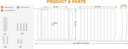 Extra Wide Baby Gate for Doorways Stairs Living Room Pressure Monuted Walk Through Safety Gate for Kids or Pets Dogs 62 Inch to 67 Inch Wide with Extensions