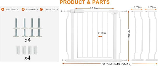 Wide Baby Gate for Stairs, Doorways, Hallways - Pressure Mounted - Walk Through - Dogs & Kids Gates - 38.5 to 43.5 Inch Wide