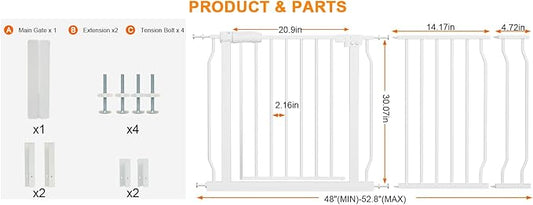 HOOEN Extra Wide Baby Gates 48-53 Inch Indoor Child Gate for Kid or Pet Dogs Walk Through Pressure Mounted Baby Gate for Doorway Stairs Living Room