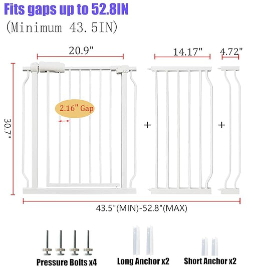 Extra Wide Baby Gate 48-53 Inch, Tension Mounted No Drilling, Pressure Mounted Indoor Safety Gate for Stairs & Doorways - Metal Design for Kids and Pets, White