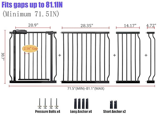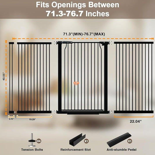 Extra Wide 76.4-81 Inch Large Baby Gates for Stairs, Doorways - No Drilling, Pressure Mounted Pet Gates for Kids & Dogs