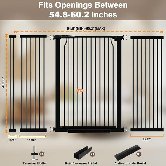 41" Extra Tall Dog Gate for Doorways Stairs, 54.8-60.2 in in Wide Baby Gates Walk Thru, No Drill Long Pet Gate for Doggie Puppy, Auto Close Large Child Safety Gate with Door Indoor, Black