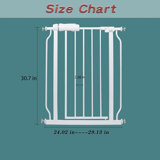 WAOWAO Baby Gate 29.13-33.82" Extra Wide Pressure Mounted Walk Through Swing Auto Close Safety White Metal Toddler Kids Child Dog Pet Puppy for Stairs,Doorways,Kitchen