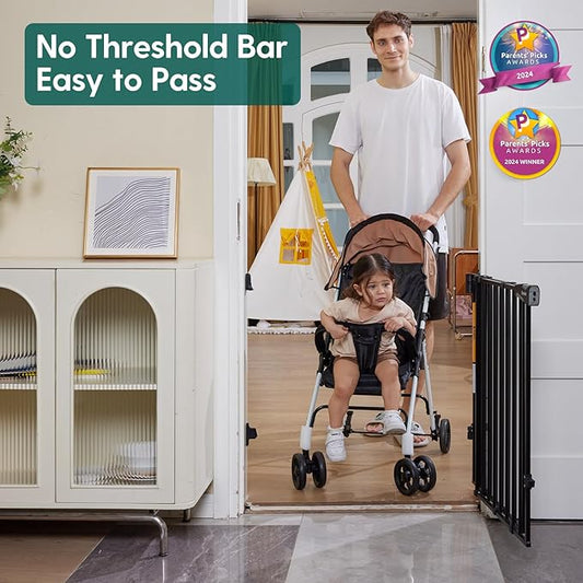 Mom's Choice-GROWNSY Baby Gate for Stairs, 29"-43" Pressure Mounted Pet Gate for Doorways-Auto Close Dog Gate for The House-Easy Installation & Walk Thru Wide Safety Gate