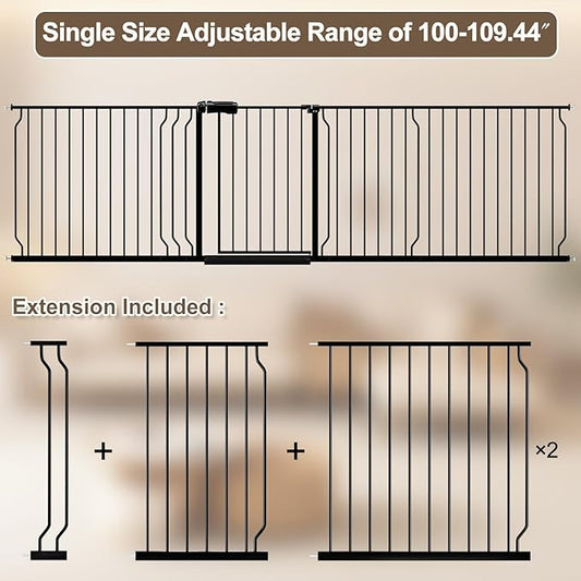 WAOWAO Baby Gate 100-109.42" Extra Wide Pressure Mounted Walk Through Swing Auto Close Safety Black Metal Toddler Kids Child Dog Pet Puppy for Stairs,Doorways,Kitchen