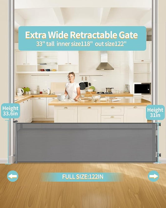 DEAR LOV Retractable Baby Gate, Mesh Baby Gate or Mesh Dog Gate, 33" Tall, Extends up to 118" Wide, Child Safety Gate for Doorways, Stairs, Hallways, Indoor/Outdoor (33"x118",Gray)
