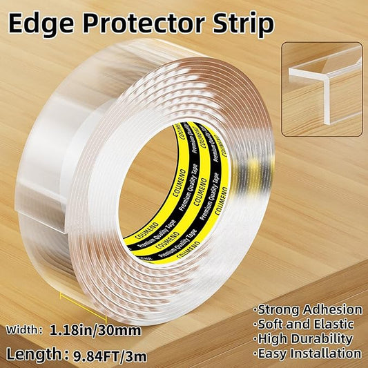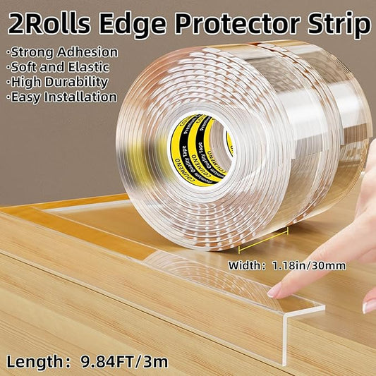 3Pack Clear Edge Protector Strip,1.57in x 9.84FT(29.52FT Total),Sharp Edge Wrap Cover Tape,Self Adhesive Protective Bumper Guards for Cabinet Door Desk Table Bed Furniture,Kitchen,Waterproof