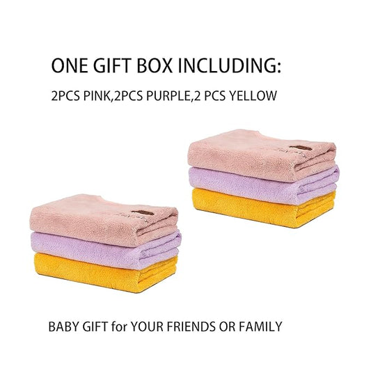 6 Packed Baby Bibs for Girls or Boys, Large Towel Bibs for Toddler 3-6 Years with Gift Box Packed(2 pink purple yellow)