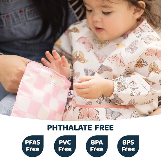 Tiny Twinkle Mess Proof Baby Bib,Waterproof Smock Baby Bib for Eating,Machine Washable Long Sleeve Bib,Baby Led Weaning,Toddler Bib (Butterflies, Small 6-24 Months)