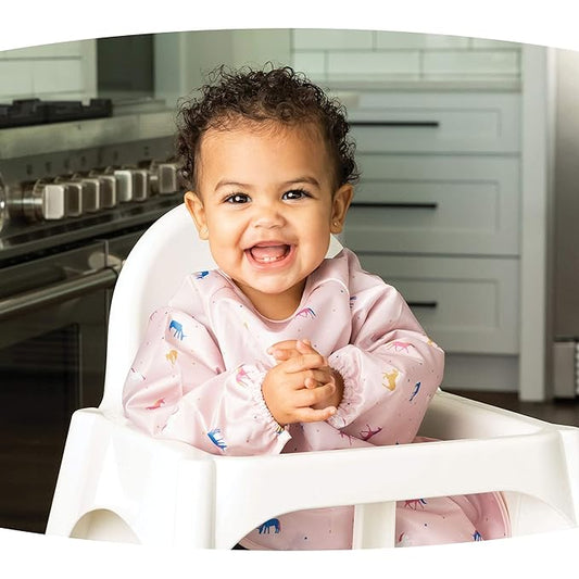 Long Sleeve Baby Bib - Mess-Proof Feeding Bibs for Babies - Adjustable, Waterproof, and Highchair/Table Attachment