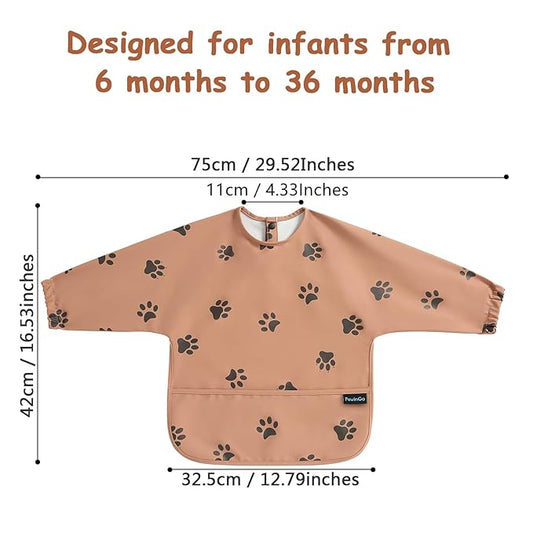 ARI MES Long Sleeves Waterproof Baby Bibs for Eating - Animals, Large- Wearable, Coverall for Toddler, Long Sleeve Bib, Smock Apron for Feeding - Applicable for 6-72 Months