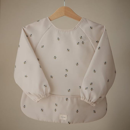 mushie Long Sleeve Baby Bib | Water Resistant Adjustable Fit for Ages 6-24 Months