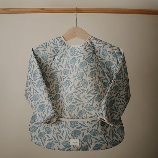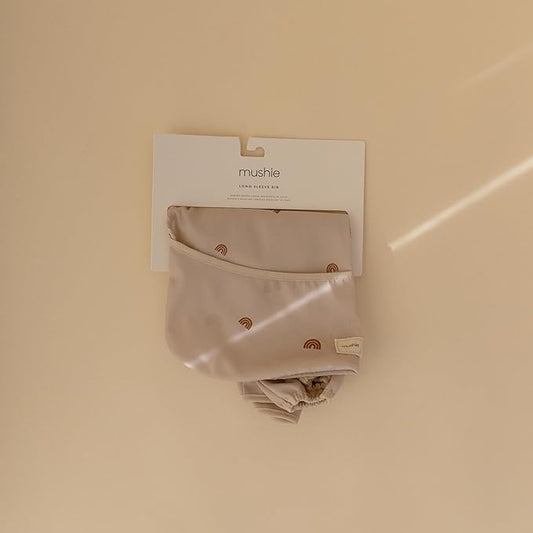 mushie Long Sleeve Baby Bib | Water Resistant Adjustable Fit for Ages 6-24 Months