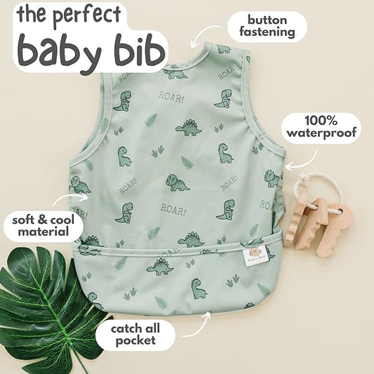 Joyo roy Mess Proof Baby Bibs 6-12 Months Waterproof Toddler Baby Boy Bibs for Eating Machine Washable Sleeveless Smock Bib Travel Reusable Led Weaning Apron for Feeding Bib with Food Catcher
