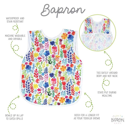 BapronBaby Flutter Boho Floral Bapron - No Neck Tie Safer Bib for Baby & Toddler - Soft Waterproof Stain Resistant - Machine Washable - Sz Preschool 3-5yrs