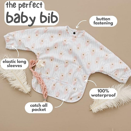 Bubba Bear Baby Bib with Sleeves, Long Sleeve Toddler Feeding Apron Bibs for Eating & Lead Weaning, Mess Proof Full Sleeved