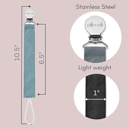Ali+Oli Linen Strap Pacifier Clip (Night) Set of 3 (10" x 1") Baby Pacifier Holder for Newborn Pacifiers & Teethers, Binky Clips, Silicone-Free Pacifier Clips