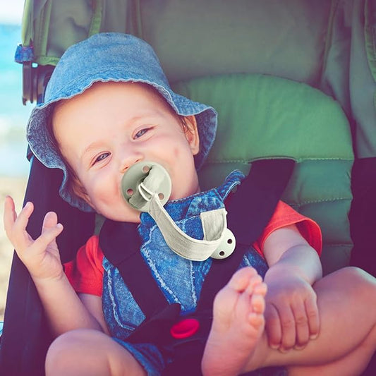 Silicone Pacifier Clip Holder for Baby Boy and Girl, Fits for Most Pacifier Teethers & Small Toys in Place, BPA Free (Sand+Light Grey)