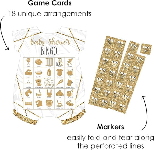 Big Dot of Happiness It’s Twins - Picture Bingo Cards and Markers - Gold Twins Baby Shower Shaped Bingo Game - Set of 18