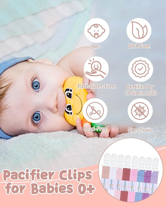 Babygoal Pacifier Clips 8 Pack, Pacifier Holder Clips for Baby Boys and Girls Fits for Most Pacifier, Binkie Styles & Baby Teethers & Toys and Gift-Neutral Color 8PS42