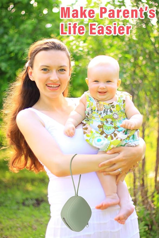 2 Pack Pacifier Holder Case, BPA Free Newborn Baby Silicone Pouch for Boys & Girls, Portable Container (Sage, Ether)
