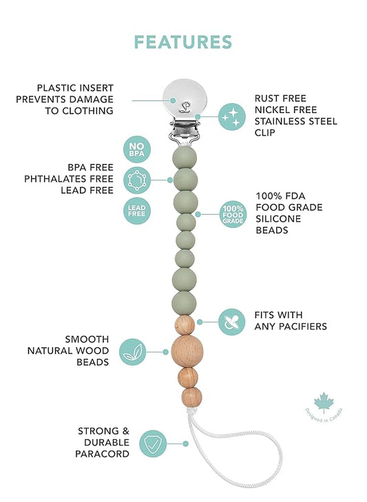mushie 100% Silicone Baby Pacifier Clip BPA Free | Hera (Sage)