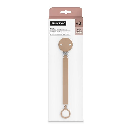 Suavinex Wonder Silicone Baby Pacifier Clip, Spain's #1 Baby Bottle and Pacifier Brand, Paci Clips for Babies, Essentials, Cork