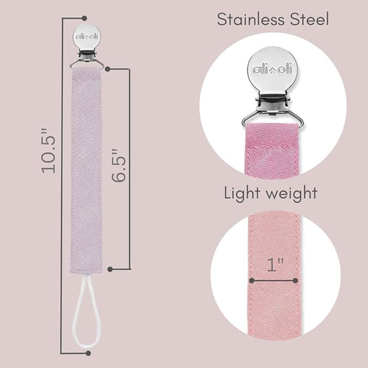 Ali+Oli Linen Strap Pacifier Clip (Flamingo) Set of 3 (10" x 1") Baby Pacifier Holder for Newborn Pacifiers & Teethers, Binky Clips, Silicone-Free Pacifier Clips