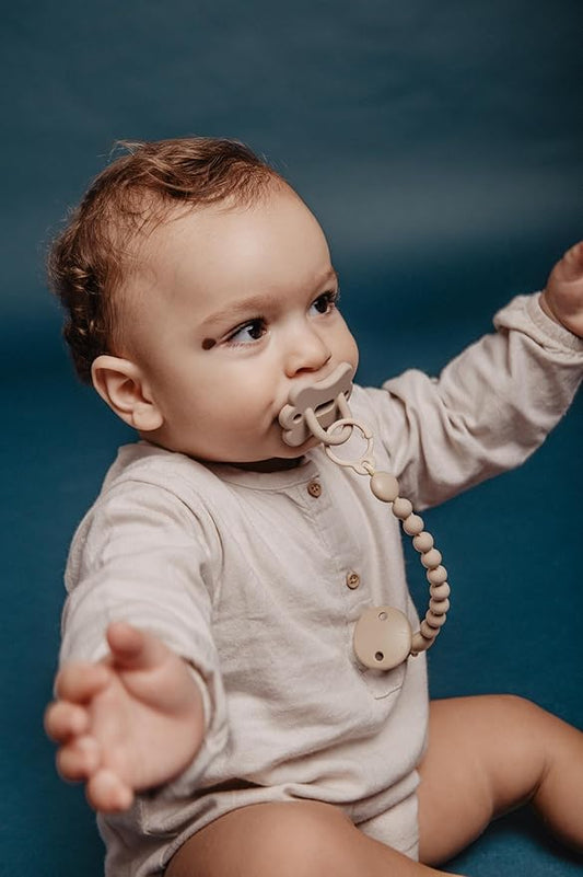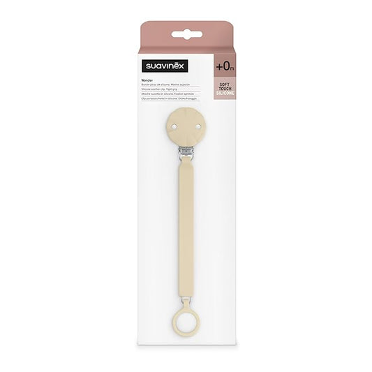 Suavinex Color Essence Silicone Baby Pacifier Clip, Single Piece 100% Soft Silicone Chain, Baby Accessories and Essentials, Designed in Spain (Irish Cream)