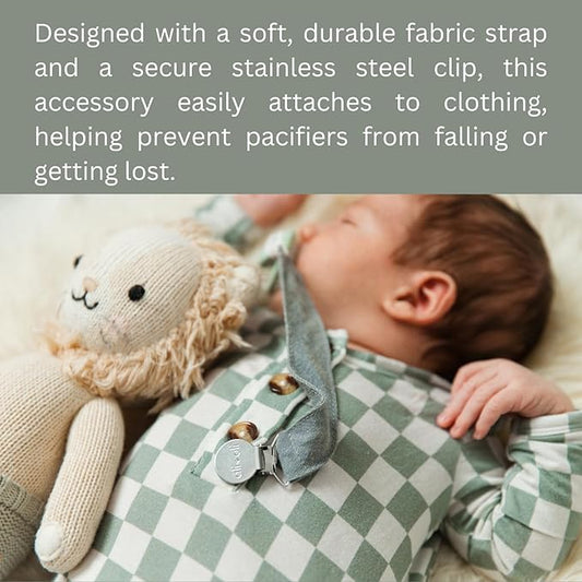 Ali+Oli Linen Strap Pacifier Clip (Forest) Set of 3 (10" x 1") Baby Pacifier Holder for Newborn Pacifiers & Teethers, Binky Clips, Silicone-Free Pacifier Clips