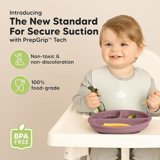 KeaBabies Suction Plates for Baby, Toddler - 3-Pack 100% Silicone Toddler Plates with Suction, Divided, BPA-Free Baby Led Weaning Essentials for Kids, Dishwasher, Microwave Safe, Durable (Desert)