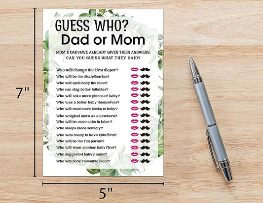 Baby Shower Game Cards, Guessing Who Dad or Mom Game, Tropical Jungle Theme Party Cards for Gender Neutral Boys or Girls, Set of 30 Cards(Green007)