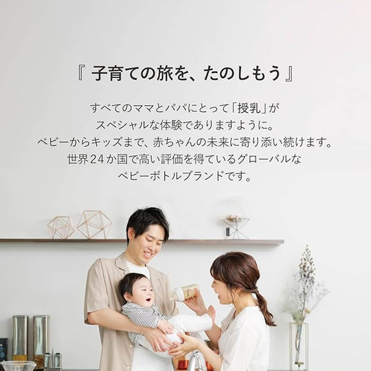 All in One Baby Bottle, BPA Free, Anti-Colic, Wide-Neck Non-Tip Stable Base, Easy to Clean Natural Baby Bottle 200ml, 6.76oz, Nipple S Level(0~3M) (Beige)