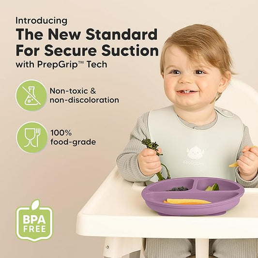 KeaBabies Suction Plates for Baby, Toddler - 3-Pack 100% Silicone Toddler Plates with Suction, Divided, BPA-Free Baby Led Weaning Essentials for Kids, Dishwasher, Microwave Safe, Durable (Amethyst)