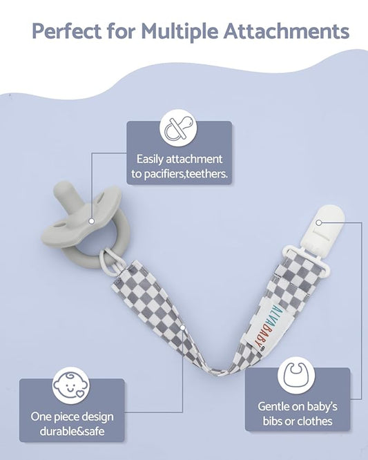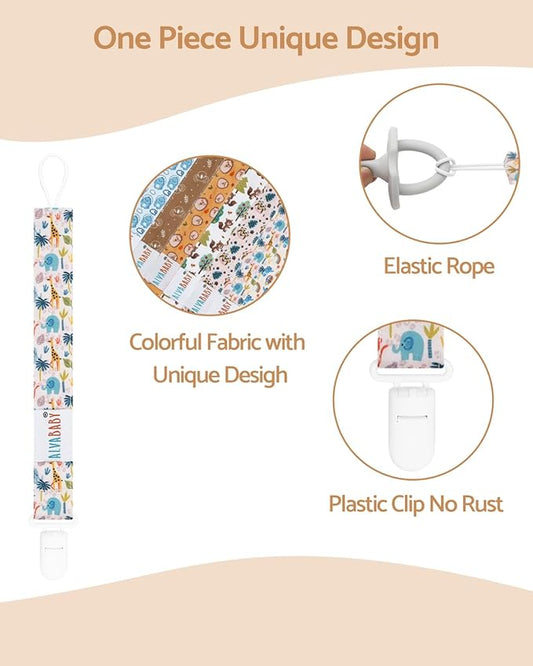 ALVABABY Baby Pacifier Clips for Boys Girls Paci Holder Leash Paci Clip Binky Holder for Teether Soothie 8 Pack 8DP16-DA