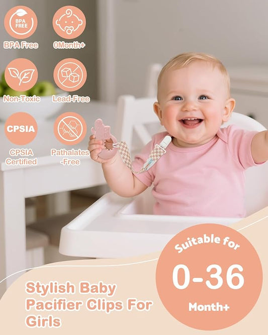 Pacifier Clip and Case for Baby Girls – Pink & Purple Set | 2 Holder Clips + Pacifier Cover | BPA-Free | 0–6 Months
