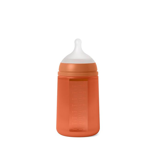 Suavinex Color Essence SX PRO Physiological Soft Flexible Silicone Baby Bottle, Anti Colic Baby Bottles, Supports Breast Feeding Babies, Made in Spain, Medium Flow, 8oz, Sunset Orange