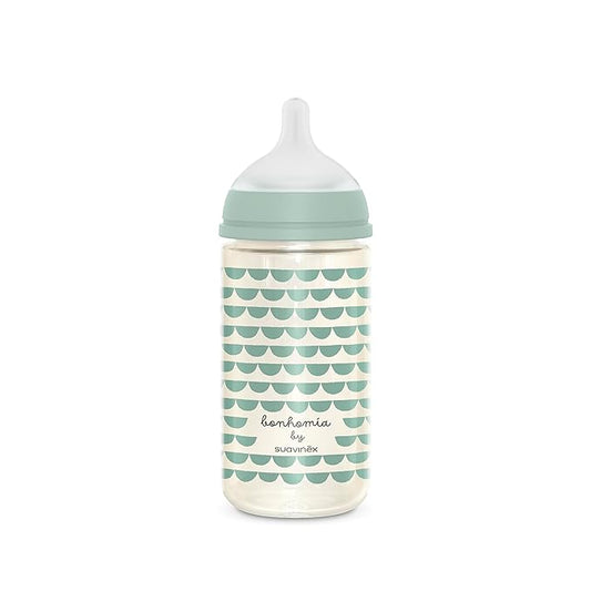 Suavinex Bonhomia Glass Baby Bottle with SX PRO Silicone Nipple, Anti Colic Baby Bottles, Baby Bottles for Breastfed Babies, Medium Flow, 3mo, 8oz, Mint