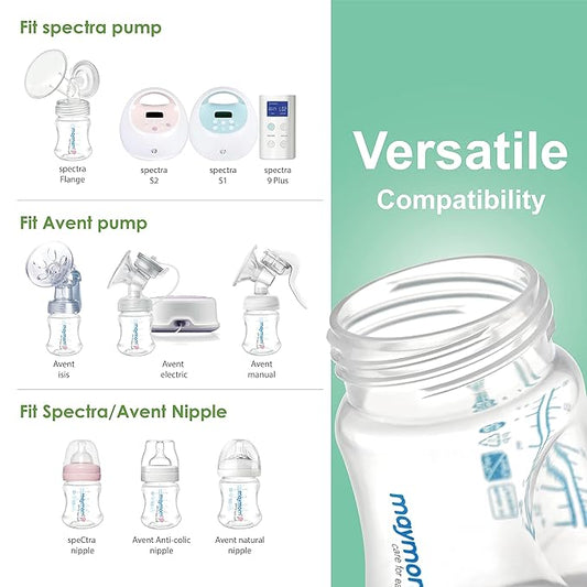 Maymom Wide Neck Breastmilk Collection and Storage Bottle 9oz; Remarkable SureSeal Disc. Compatible with Spectra S2, Spectra S1 Spectra 9+ and Avent Breast Pumps