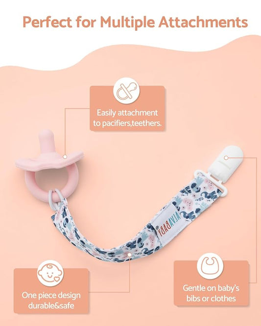 ALVABABY Pacifier Clips Floral 8 Packs Paci Clip Holder Leashes for Baby Girls Fits Teething Rings